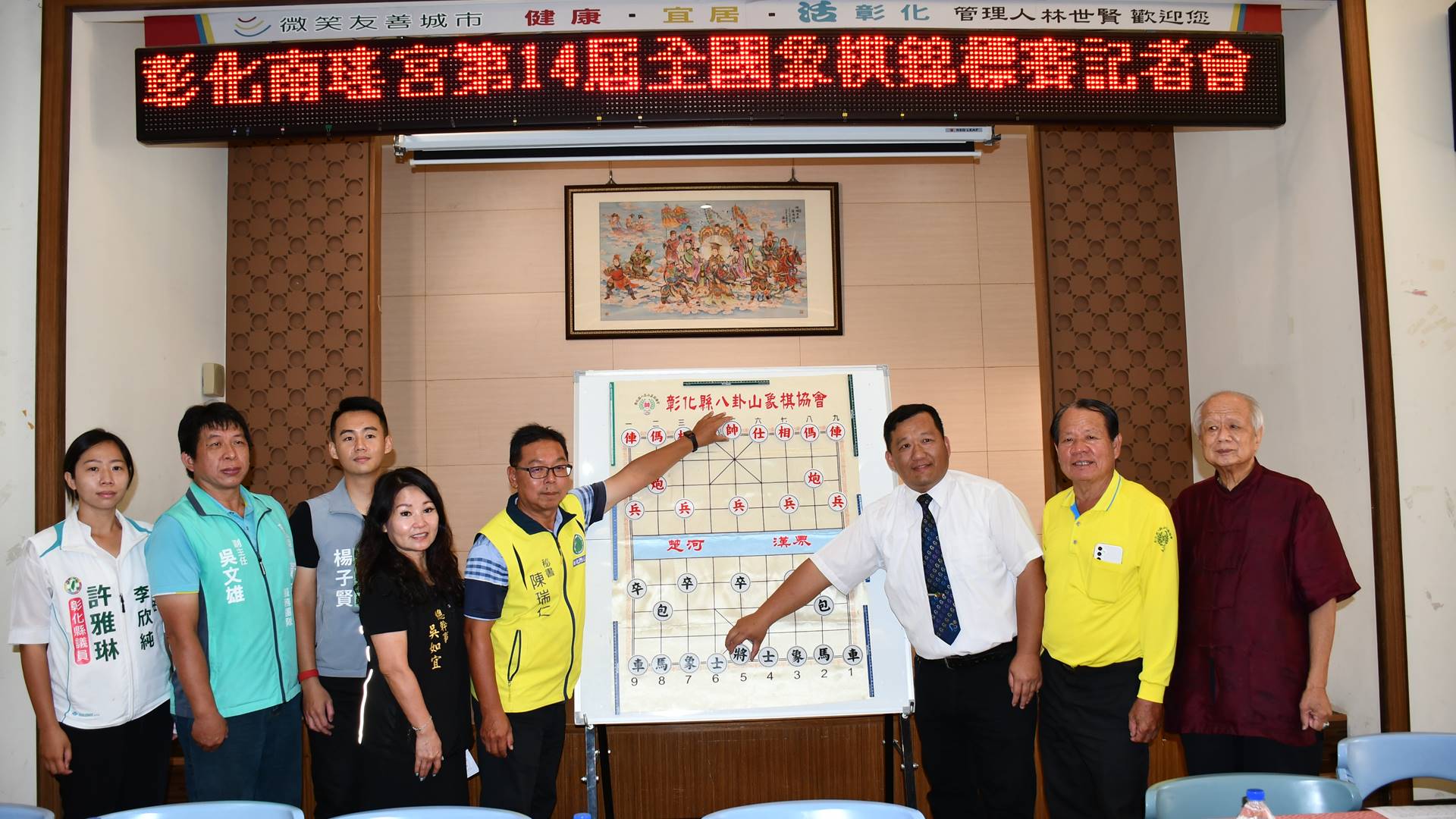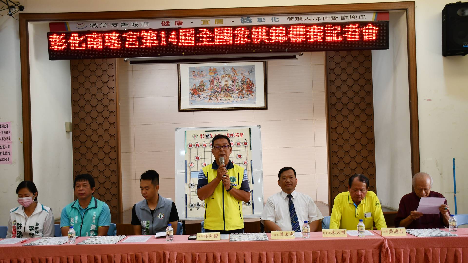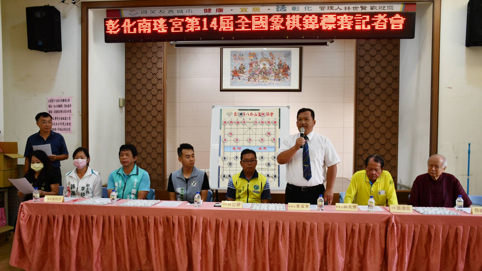 ▲彰化市公所秘書陳瑞仁代表林世賢市長主持南瑤宮第14屆媽祖盃全國象棋錦標賽記者會。(記者林明佑翻攝)