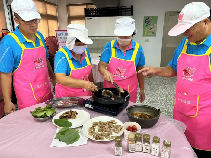 蔡建宗強調,此次獲獎農讚鍋物獎及農讚烤霸獎也要感謝莊寶葉、蔡美珠、蔡美美、陳淑鐘及王淳鐃等五位家政班員,將安農五寶「豬肉、芋頭、大安蔥、酒莊、安泉米」入菜,食材安心、製程安全、新鮮美味讓您安心食用。