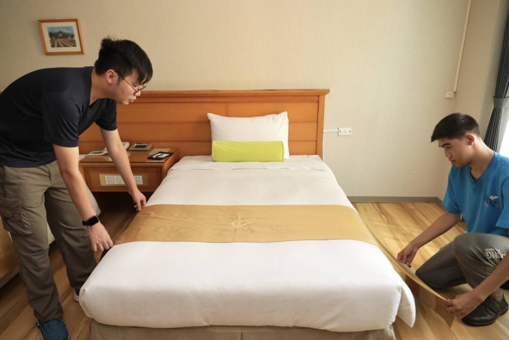 為解決疫後旅宿業缺工,中彰投分署積極推動「疫後改善缺工擴大就業方案」,結合嶺東科技大學協助培訓福爾摩沙草悟道酒店所需房務人力,透過為期2周,進行共80小時紮實且專精的實務訓練,由業界具有豐富資歷和經驗的師資手把手教學,包含洗衣部門管理、客房採購實務、浴室清洗過程、客訴事件處理案例、整房實作等豐富課程,從學科專業知識銜接實務操作,培養學員工作職能,該班9月底結訓,直接補足業者的人力缺口。