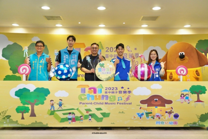 2023台中親子音樂季記者會24日於市府市政大樓舉行。新聞局長鄭照新指出,台中親子音樂季邁入第六屆,去年活動2天締造1萬6000人次盛況,今年在北屯區南興公園,除精彩表演外,還有親子遊具、闖關遊戲、創意市集等,「歡迎爸爸媽媽帶小朋友一起同歡!」