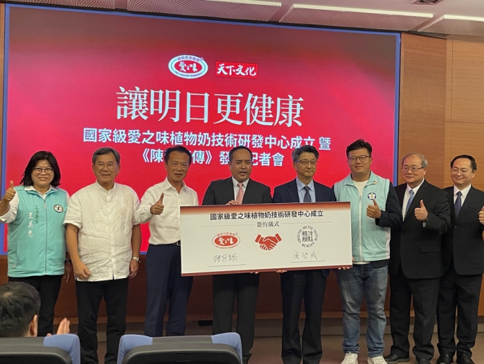 【記者張文一嘉義報導】植物基商品已是明日之星,全球各大食品廠紛紛投入資源,研發對環境永續的健康食品策略。經濟部為符合國際創新產業趨勢,積極推動「A+企業創新研發萃煉計畫」。愛之味與財團法人食品工業發展研究所( FIRDI ) 共同合作,正式成立國家級「愛之味植物奶技術研發中心」,打造以研發技術掛帥的台灣綠色產業升級專案。10月27日在嘉義產業創新研發中心舉行食品所營運及進駐嘉義產業創新研發中心,簽約儀式暨耐斯.愛之味共同創辦人「陳哲芳傳 」新書發表會,現場嘉賓如雲,嘉義縣長翁章梁、嘉市觀光新聞處長張婉芬、建設處長田長沛、食品工業發研究所所長廖啟成,立委陳明文、王美惠、嘉大校長林翰謙等長官皆受邀蒞臨與會。