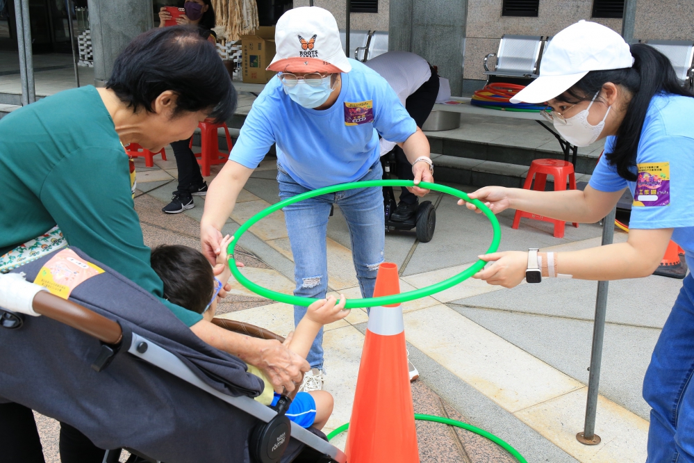 主辦單位也在園區內安排許多適合特教生的分站教學活動,包括釣魚好手、足讚足讚、套住歡樂、好事成雙、百投百中、灌籃高手等6個結合平日學習課程與舒展身體的活動,讓孩子們可藉此進行大肌肉與小肌肉活動的舒展;活動在老師、助理員、家長們陪伴下,帶領特教孩子們玩得開心,留下滿滿的歡樂記憶。