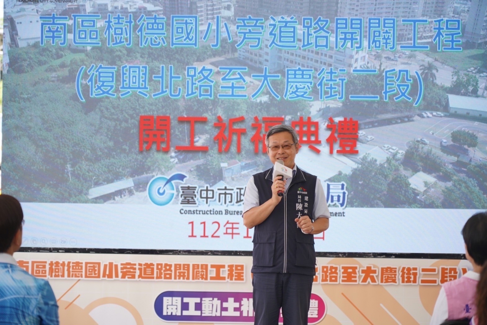 【記者林獻元台中報導】為提升台中市南區樹德國小周邊交通機能、促進區域發展,並提供學童與行人安全舒適的通行空間,市府建設局進行南區樹德國小旁道路開闢工程(復興北路至大慶街二段),新闢道路沿樹德國小周邊連通復興北路與大慶街二段,可分散上下學車潮,並一併設置雨水下水道,改善區域排水,工程今30日開工,由市府建設局長陳大田代表市長盧秀燕主持開工祈福典禮,盼提升學童通行安全,並改善淹水問題。
