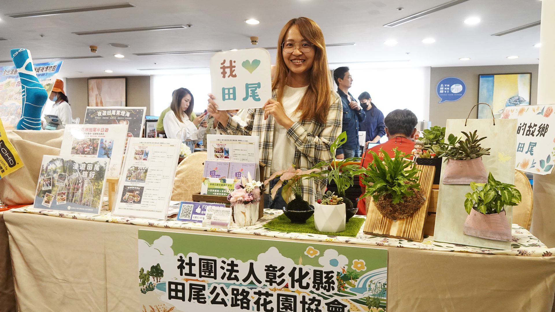 ▲社團法人彰化縣田尾公路花園協會專案經理陳思羽現場設攤,將與旅行業者交流媒合,讓更多人深入認識田尾之美。(記者林明佑攝)