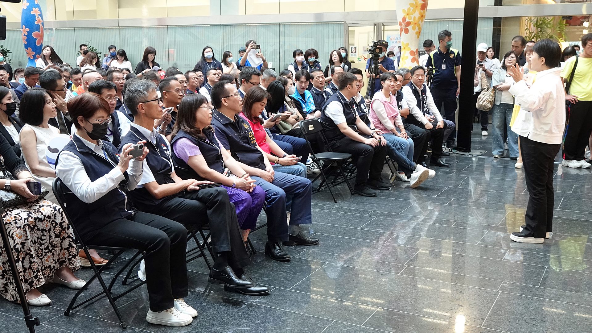 ▲台中通APP下載破200萬次,台中市長盧秀燕與現場嘉賓共同進行活動啟動儀式。(記者林明佑攝)