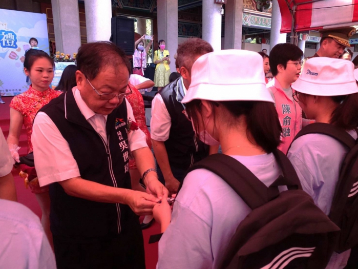 台中市112年祈福成年禮活動,市議員陳文政、黃健豪、陳俞融、民政局長吳世瑋、衛生局長曾梓展、北區區長陳宗祈、北屯戶所主任鄭鳳秋、北區衛生所主任彭瑞珍、台中市孔廟所長李書華、台中一中校長林隆諺、中部地區後指部指揮官吳國良將軍及在地各里長等人均到場,立法委員莊競程、市議員陳政顯也派員共襄盛舉。