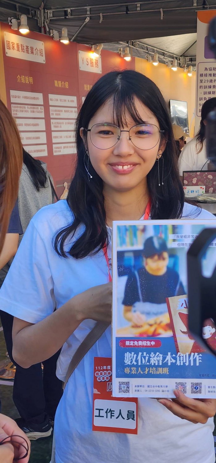 參與勞動部「產業新尖兵」的青年賴霈瑜分享她在數位繪本創作專業?員培訓班課程中的體會,包括數位創作軟體操作、社群行銷觀念技巧等專業,學習到許多學校沒教的業界專案技能,她建議青年要多多運用政府資源,使個人的職涯勝券在握。