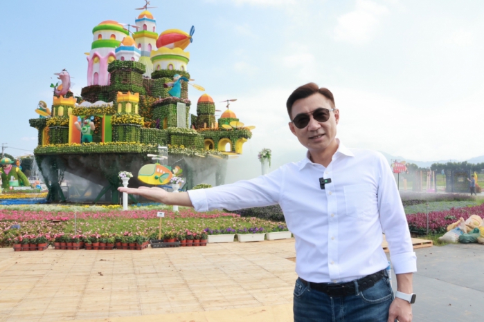 江啟臣也笑說,看了新社花海以後心情會很好,歡迎大家一起來看,心情好什麼事都好,尤其是今年的花海是在疫情之後強勢回歸,不是只有花毯,是花海聯手花毯一起來,絕對會令觀賞者感到非常的心花怒放。