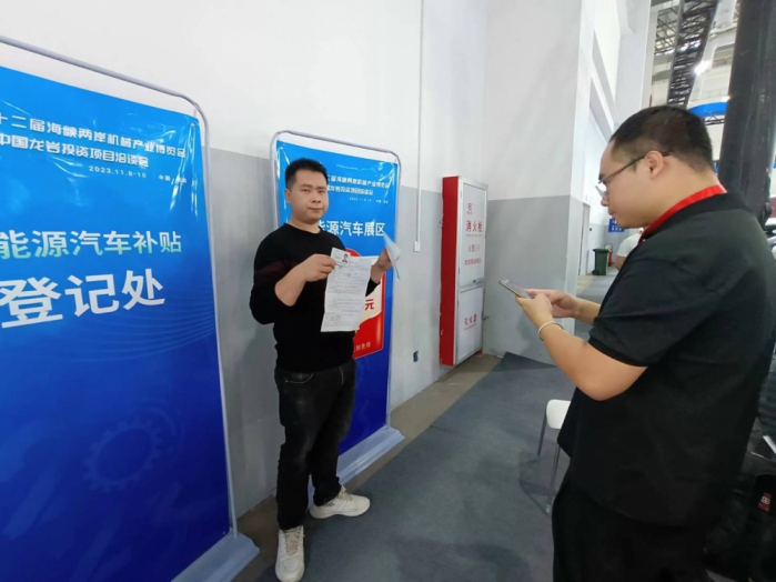 龍岩是福建省最早的汽車工業基地,汽車整車及專用車方面,以新龍馬、福龍馬為主,年均產銷各類汽車2萬多輛。在新能源和新材料展區,除了展示各種新能源電動車與油電車外,有一家車商還特別舉辦現場登記購車,折價4千元人民幣活動,立刻打動顧客的心,現場湧入近百位購車民眾,大排2條長龍。