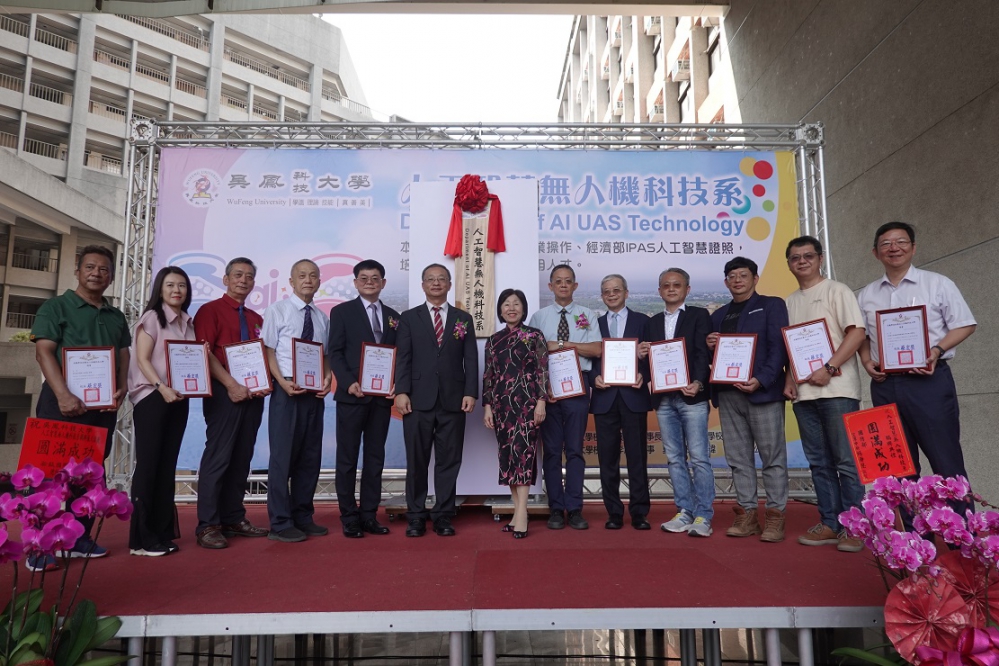 典禮上,吳鳳科大宣佈特聘國軍培訓無人機推手,甫從空軍航空技術學院退役的陳楊正光上校博士擔任人工智慧無人機科技系的籌備主任;陳博士指出,人工智慧和無人機技術已經成為當今世界科技發展的兩大引擎,無人機不論在農業、土地量測及救災等應用上有很大的幫助外,在俄烏戰爭中更充分展現出無人機的戰場優勢。無人機已儼然成為各國競相發展的主要科技項目,該系學生將來以取得民航局無人機證照及經濟部IPAS人工智慧相關證照為主要教學目標,學生將可在人工智慧及無人機等高收入產業實習並順利接軌進入相關產業,亦或報考ROTC成為國軍無人機專業人才。