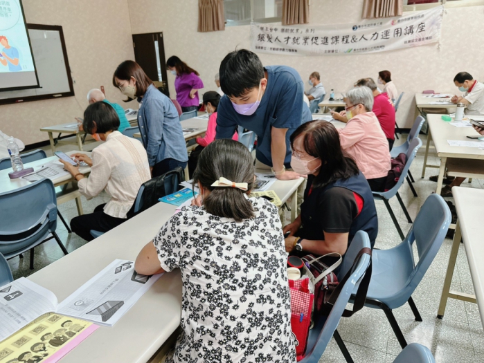 勞工局指出,「3C科技應用就業促進課程」為勞工局與台中科技大學老人服務事業管理系攜手辦理,由該系校友江浚瑋老師講授專業資訊知能,搭配學生小助教與中高齡者一對一教學,小助教們除驗證課堂所學,在互動學習中,也讓中高齡求職者更熟悉手機功能、運用網路管道求職,提升就業後使用3C工具能力。