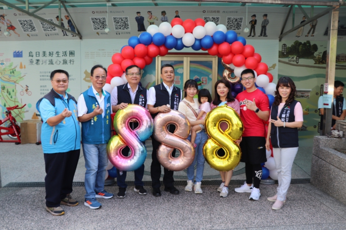 烏日區公所10日在公所第一會議室舉行揭彩慶祝活動,與市民分享喜悅,由民政局長吳世瑋帶領來賓揭開慶賀彩球,宣告烏日邁向嶄新未來,並代表頒贈3位幸運兒精美小家電及紀念牌,感謝市民支持移居烏日,同時也祝賀烏日區持續蓬勃發展,氣勢長虹一路發。
