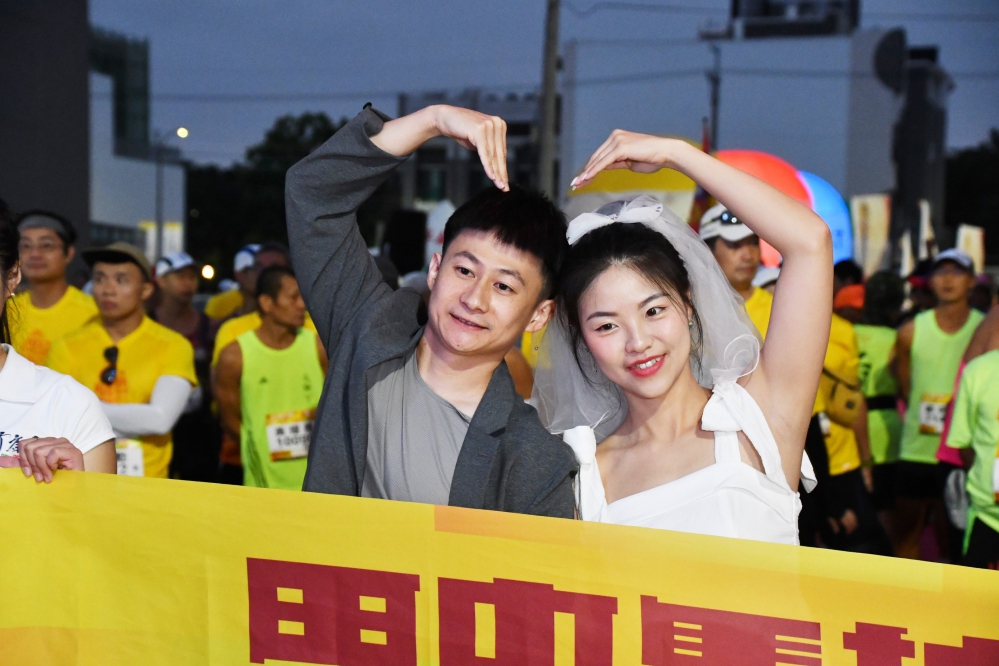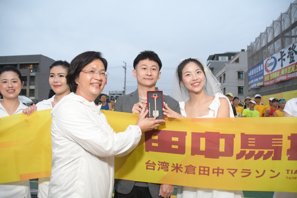 〔記者周為政田中報導〕「2023台灣米倉田中馬拉松」,今(12)日清晨熱鬧開跑,由縣長王惠美、鎮長蕭淑芬和立委陳素月、中華民國舒康樂活運動協會總幹事鄭宗政等人鳴槍起跑,今年最特別是1對因愛運動而認識的情侶,在王縣長見證和來賓祝福下結為夫妻。