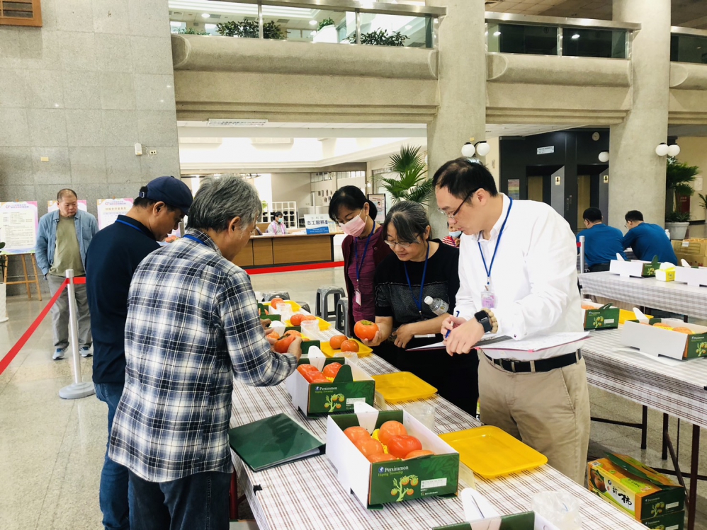 農業局主任秘書陳柏宏表示,此次評鑑活動邀請農業部農糧署中區分署、台中區農業改良場及國立嘉義大學等農業學術研究單位代表擔任評審,依據甜柿外觀果形、重量、質地風味及糖度等項目進行評分。