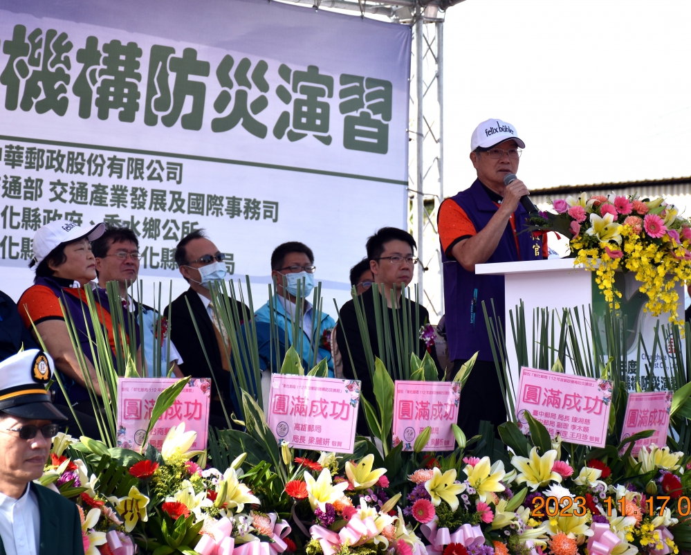 彰化郵局指出,演習在秀水鄉第二公有停車場進行,蒙交通部、長官蒞臨指導和縣府、縣警局、消防局、鄉公所等單位鼎力相助,協同演習。