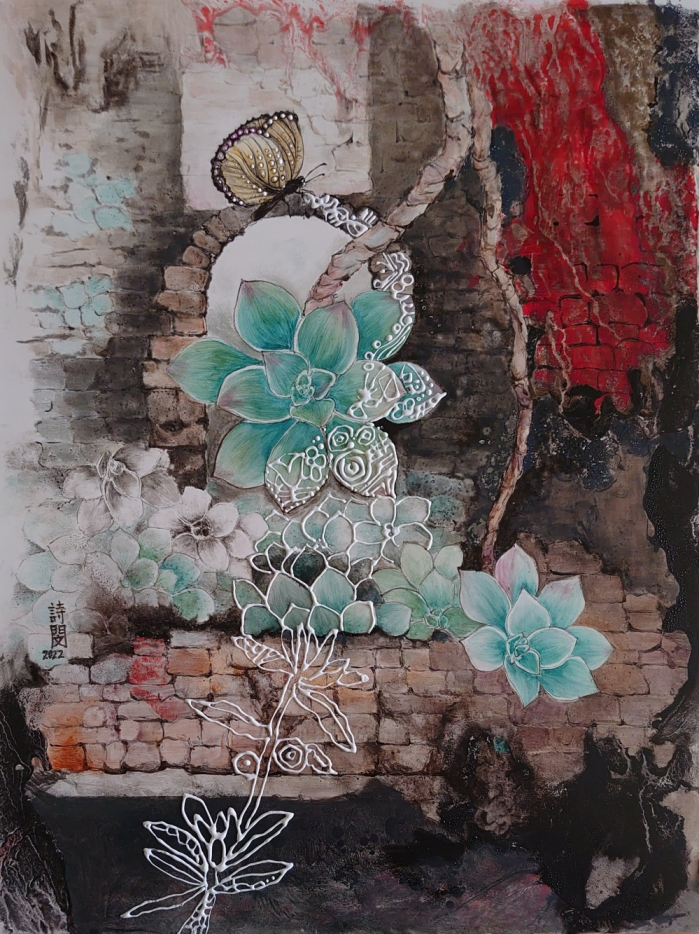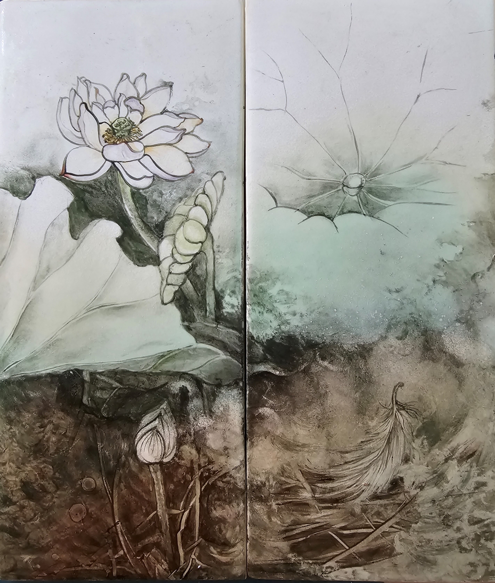 【記者張文一嘉義報導】黃詩閔在離開畫筆將近40年後,曾將畫筆換成剪刀,平日以教授插花為主。她原以為這輩子不可能再拿起畫筆,然而60歲才又回到研究所就讀,在研究所期間,很勇敢地再重拾畫筆,專研瓷版畫創作,以瓷板作為創作媒材,探討瓷版畫的高、低溫綜和運用在瓷板上的研究,以及陶瓷繪畫的新型裝飾技法和審美。11月20日至_11月25日,將在嘉義大學民雄校區文薈廳舉辦花顏瓷語,個人瓷版畫創作展。