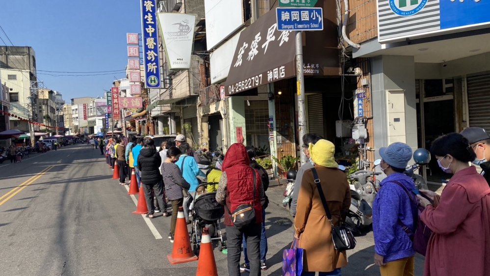 楊瓊瓔服務團隊上午在順濟宮發送水果月曆,預先準備500本,吸引大批民眾領取,排隊人潮從廟口沿著神岡路街道綿延到神岡國小,長達300多公尺,最後服務團隊2度緊急追加到700本,才消化排隊人龍。尋求連任的立委楊瓊瓔展現親和魅力,一邊發送月曆,不忘向鄉親問好,拍照也來者不拒,許多支持者預祝「凍蒜」!