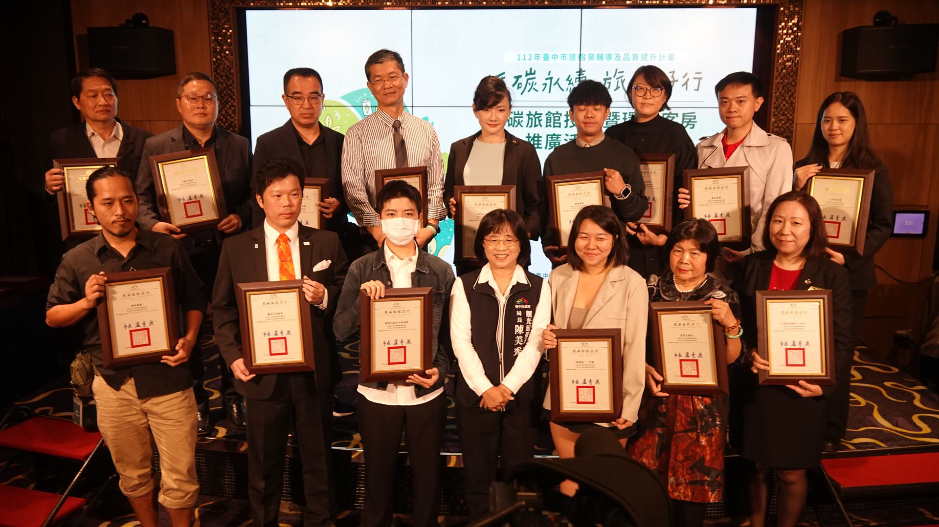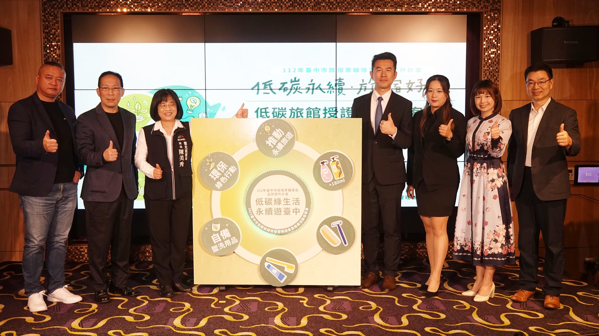 市府觀旅局長陳美秀表示,台中市是全國第二大城市,對於環境永續責無旁貸,103年度即制定「台中市發展低碳城市自治條例」,更是全國率先實施低碳旅館認證的城市,低碳旅館認證是邀請各領域專家學者針對省電、省水、熱能等設施及一次用產品減量等項目進行檢視後,提供業者可行的節能作法與建議,旅館業者經過一定時間改善後,如通過標準即核發低碳旅館認證標章。