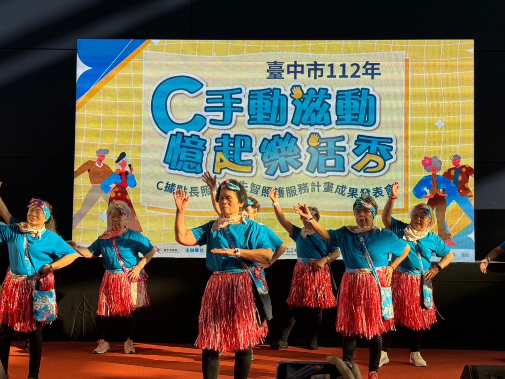 【記者林獻元台中報導】資深市民一起動起來!台中市政府衛生局22日在台灣大道市政大樓舉辦C據點長照站暨失智照護服務計畫成果發表會,以「C手動滋動.憶起樂活秀」為主題,今年擴大結合失智照護服務計畫聯合辦理成果發表會,包括走秀動態表演、靜態成果作品展、失智共照中心分享照顧經驗海報展、認知功能篩檢及失智症諮詢服務,現場集結超過500位C據點、失智共照中心、失智社區服務據點的夥伴、長輩及家屬同樂,氣氛熱鬧。