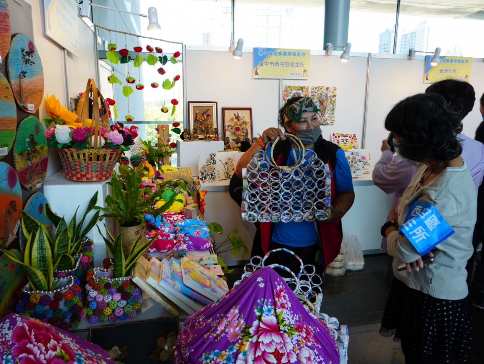 曾梓展提到,除了據點走秀表演外,現場擺設15處據點靜態作品成果,展示長輩於C據點上課時的創作,包括繪畫、編織、藍染、環保回收物再製作等豐富多樣的作品。此外,今年特別結合失智照護服務計畫擴大辦理成果展,安排失智症系列活動,如失智共照中心分享照顧失智症的成功照護經驗海報展,以「飲食、益智、運動、社交」4大議題,設攤宣導延緩失智症、提供認知功能篩檢及失智症諮詢服務。