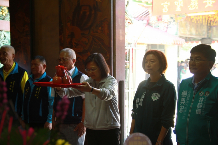 【記者楊川欽台中報導】總統蔡英文於23日上午到烏日東女慈聖宮參拜,受到民眾熱烈歡迎,由於該處是林靜儀的選區,因此蔡英文也向選民呼籲支持林靜儀競選連任,來為地區爭取更多建設及服務群眾。