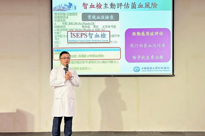 傳統菌血症診斷,往往需等候18到72小時才可得到血液培養報告,鑒於治療時效性,中醫大附醫團隊在周德陽院長帶領,開發人工智慧輔助工具「智血檢」,是全球首創以AI提早偵測病人可能轉為敗血症的預警機制。相較於傳統血液細菌培養,不需額外的抽血檢驗及檢驗儀器操作。在提升感染症患者處置時效品質下,同時大幅降低醫療人力成本。