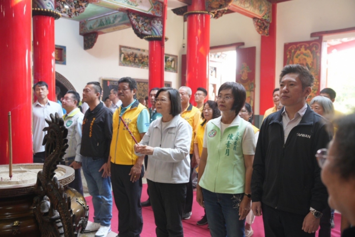 〔記者周為政田尾報導〕2024年總統大選倒數48天,總統蔡英文今(26)日上午由立委陳素月、縣議員張欣倩、楊子賢等人陪同來到田尾鄉沛霖宮參香,受到主委邱家和、在地民代和千名鄉親歡迎,鄉民高喊加油、凍蒜,蔡英文總統感受到彰化滿滿熱情。
