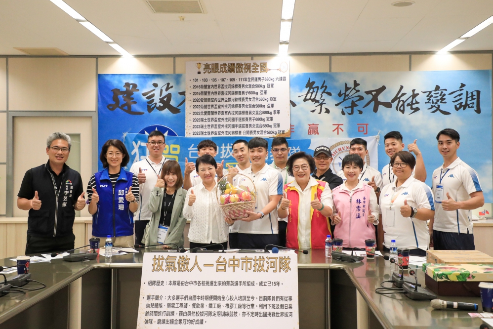 市長盧秀燕表示,感謝選手長期付出心力投入訓練,甚至犧牲與家人朋友相處的時間,為台中市、為國家爭光。同時也感謝教練、經理、議員在幕後堅定支持,市府會配合需求,持續強力推展拔河運動。拔河運動展現團結,拔河隊員團結一心投入訓練及體態管理,不僅打破運動隊員人高馬大的刻板印象,更展現大家全力以赴的團隊精神。