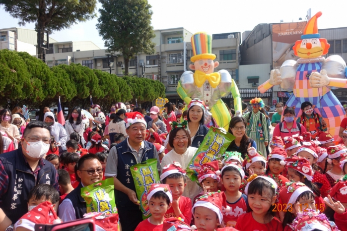 【記者張文一嘉義報導】為了迎接歡樂的聖誕節,民雄鄉立幼兒園老師們昨日帶著創意變裝的小朋友踩街報佳音大遊行,讓熱鬧的民雄街面喧染一片純真歡樂氣氛。林于玲鄉長表示,小朋友的笑容最像冬天暖陽能暖化我們的心,藉此活動由這些小天使們以實際的行動讓大家一起感受聖誕節的歡樂與分享愛的氛圍,也是一種機會教育,學會愛及分享。