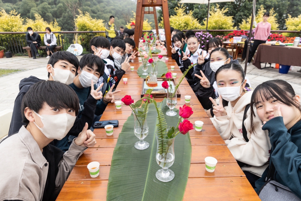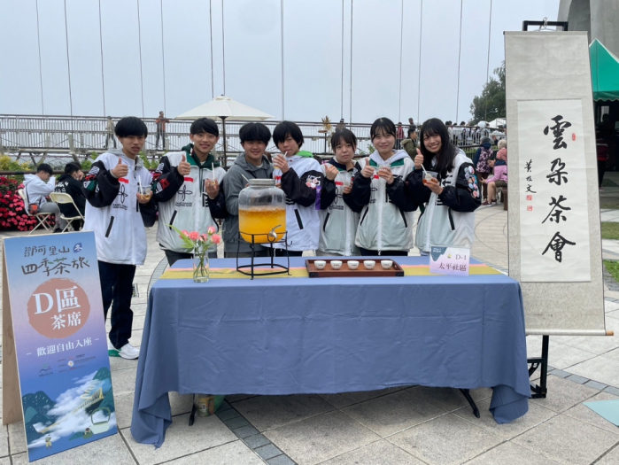 【記者張文一嘉義報導】冬日的阿里山如詩如畫,煙雲繚繞、茶香瀰漫,讓人沉浸在寧靜祥和的仙境之中。由交通部觀光署阿里山國家風景區管理處所打造的茶旅品牌「阿里山四季茶旅」,迎來今年度最後的冬季盛事「冬季茶會」。活動特別邀請今年參與嘉義市國際管樂節的表演團隊-日本關東學院高等學校吹奏樂部一行近百人,蒞臨太平雲梯及老街參訪,除了參加汗路踩街展現精湛的管樂演出外,亦帶領深度導覽太平社區,品茗、喝咖啡及品嚐美食等善盡地主之誼,期待未來能帶來更多日本觀光客來嘉義旅遊。