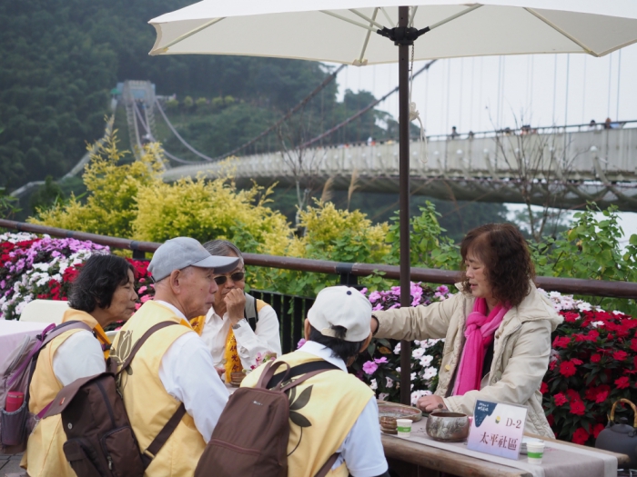 這場冬季茶會以「雲頂故事」為主題,結合傳統文化與在地特色,打造出雲朵仙境,包括「雲彩茶席」、「汗路踩街」、「星空辦桌」和「太平探集」市集,全日節目讓遊客在阿里山冬季中盡情沉浸在美好的文化、美食和景色中。的活動圍繞在太平雲梯週邊及老街舉辦,在地大家長梅山鄉太平村嚴清雅村長與阿里山國家風景區管理處陳榮欽副處長,和農業部農村發展及水土保持署南投分署傅桂霖分署長,熱鬧揭開活動序幕。