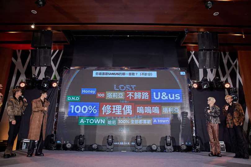 男團U:NUS12月20日推出首張專輯《途迷》(Lost In The Future),日前舉辦發片記者會,4位團員高胥崴、高有翔、吳昱廷、蔡承祐穿著「美拉德」風格時裝現身,現場更呼應先行曲〈100%〉,U:NUS在11月底率先推出嘻哈先行曲〈100%〉,團員們開心表示:「很感激能被更多人看見」,更分享MV上架後印象最深刻的是:「有講西班牙語的女生做了MV reaction,雖然不知道影片中他說了什麼,但很開心也很意外UNi遍及各地到那麼遙遠的地方。」。