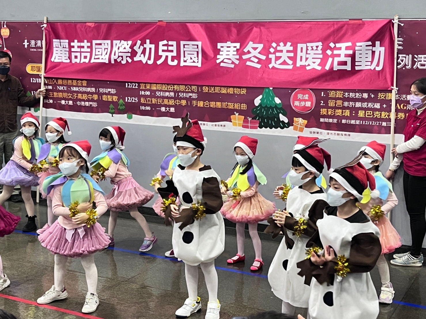 ▲麗喆國際幼兒園在澄清醫院寒冬送暖表演。(記者林明佑翻攝)