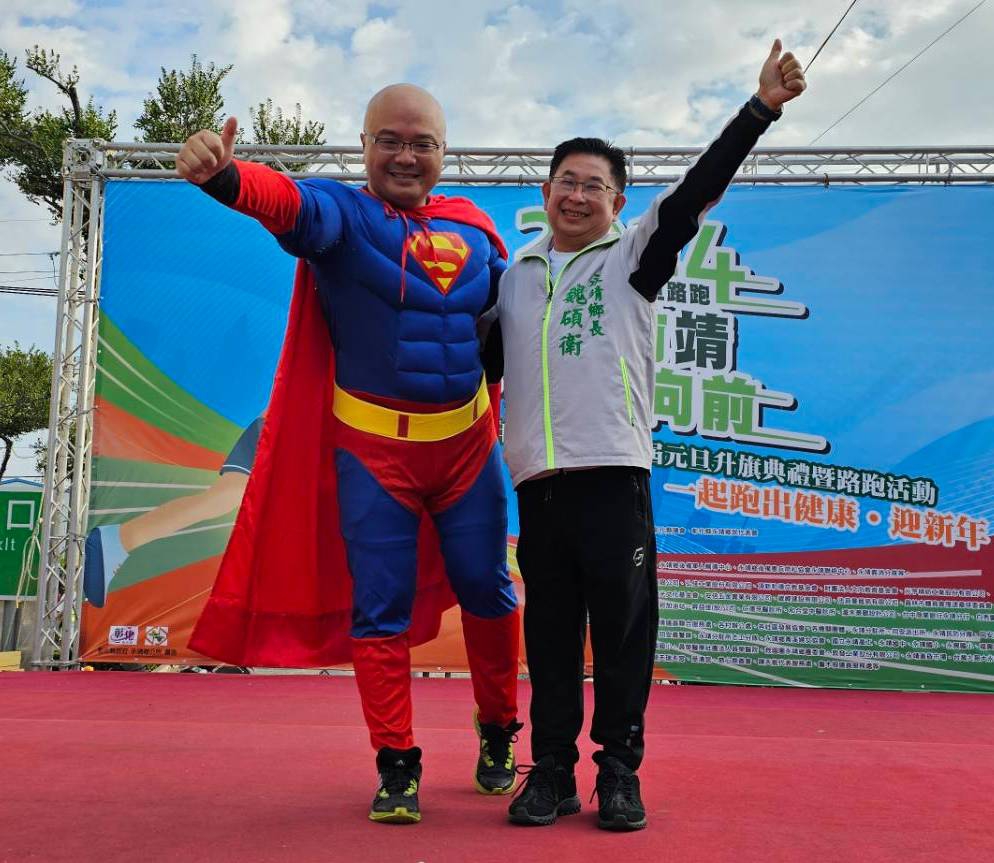 慶祝元旦,提倡全民體育,增進身心健康,永靖鄉113年元旦升旗典禮和路跑,今日清晨6點在鄉公所前廣場舉行,由魏鄉長帶領齊唱國歌,為路跑揭幕,鄉長希望全民跑出健康,迎接新年;