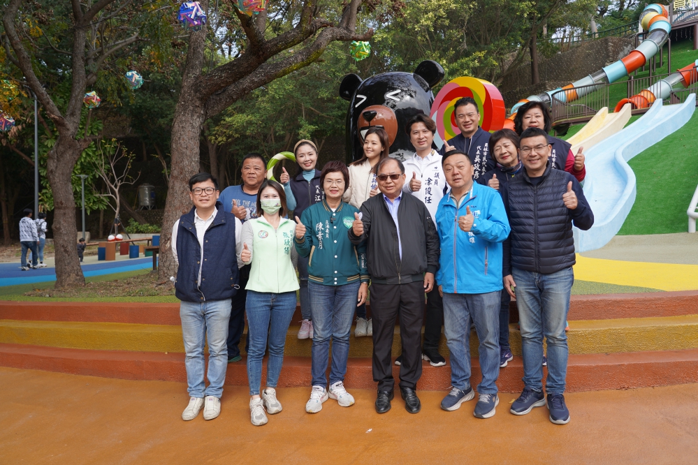今(2)日由參管處長曹忠猷、立法委員陳素月、員林市長游振雄主持竣工謝土儀式後,與在場多位在地縣議員、代表及里長一起到園區體驗遊戲設施;陳素月立委表示,百果山遊憩區是在地大家很美麗的記憶,這幾年向中央爭取經費,終於能在今天看見百果山風華再現,歡迎在開放後,大家來到這裏遊玩,順遊彰化。