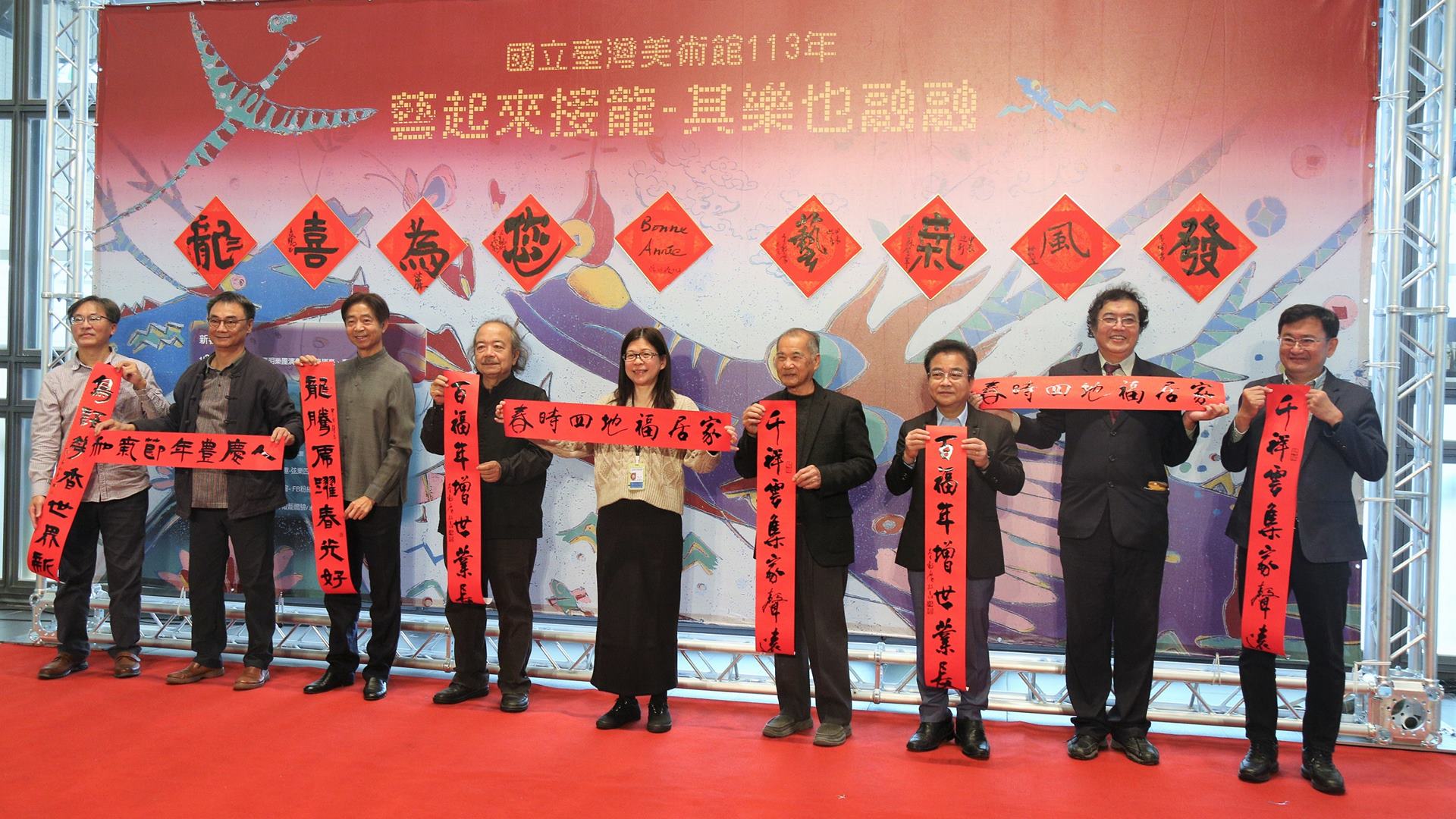 【記者林明佑/台中報導】為迎接甲辰龍年來臨,文化部所屬國立臺灣美術館即日起推出中華民國第39屆版印年畫「龍騰福聚─龍年年畫特展」,透過徵選獲獎的版印年畫帶來新春喜慶,今(21)日辦理頒獎典禮暨開幕式,由陳貺怡館長主持,多位評審委員及得獎者出席,並邀請臺中市東勢國小國樂團以悠美音樂表演開場,場面盛大。此外,國美館即日起推出「藝起來接龍─其樂也融融」春節系列活動,延續至2月24日元宵節。