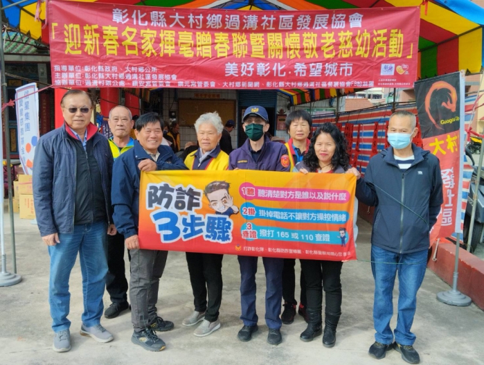 過溝村總幹事賴杰宏說,隨將屆農曆春節腳步,並迎接甲辰龍年,大村過溝社區協會和過溝村長賴保全辦公處、鎮安宮管委會主委賴耀寬、信星集團愛星基金會等善心單位和人士,28日上午在鎮安宮廟埕廣場舉辦﹁名家揮毫贈春聯、關懷敬老慈幼﹂活動,讓村民提前感受過年氣氛。