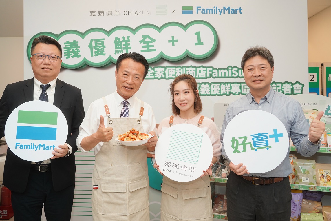 【記者 劉奕廷/台北 報導】嘉義縣農產品牌「嘉義優鮮」,在嘉義縣政府的大力支持下,今年一開始就攜手全家便利商店,媒合上架嘉義優鮮系列商品進入全臺43間FamiSuper超市店型,(31)日舉辦「嘉義優鮮全+1」全家便利商店FamiSuper嘉義優鮮專區發布會,由嘉義縣長翁章梁、全家便利商店林鴻成部長共同發布此次的合作,並邀請藝人咪咪(Paul&咪咪)一同推廣嘉義優鮮農產品牌,消費者可以踴躍前往選購。