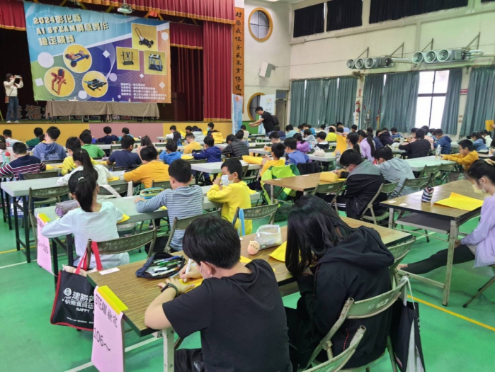 〔記者周為政大村報導〕因應AI時代,全台首場﹁AI STEAM創意實作檢定競賽﹂,今(3)日在彰化縣村上國小登場,百餘名小選手進行﹁認知檢測﹂和﹁主題實作應用﹂,由專家團隊組成評審小組,進行答辯評分。
