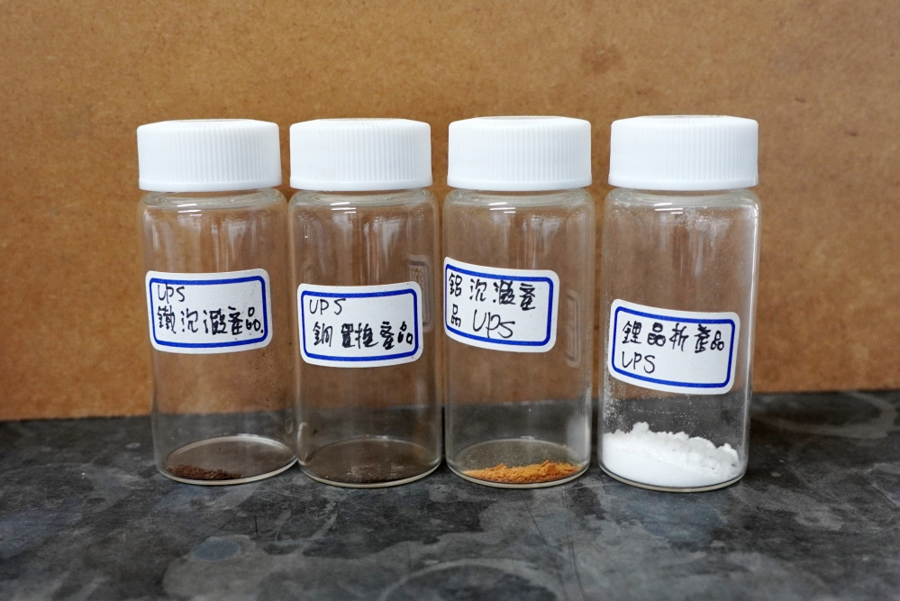 環工系碩生黃梓倫說,跟隨老師和學長參與實驗,將UPS中鋰鐵電池正負極混合物,經浸漬溶蝕等步驟後,嘗試不同條件設定,將鋰、鋁、銅、鐵四種有價金屬一一分離出來,再找出最佳回收製程。