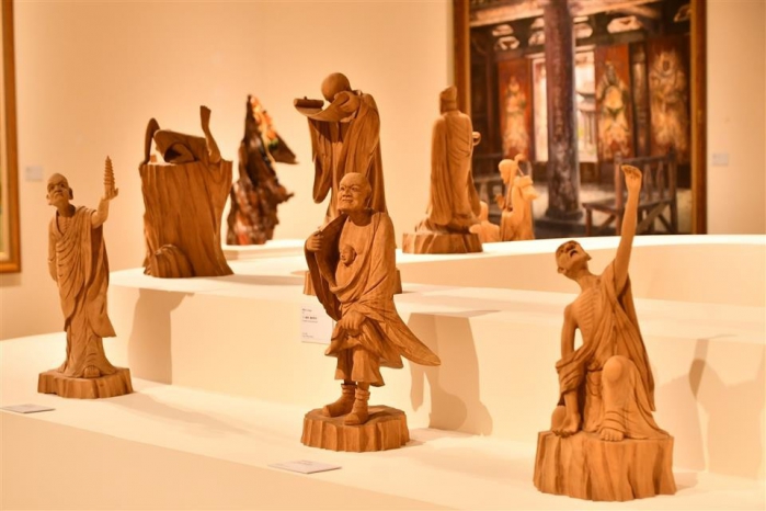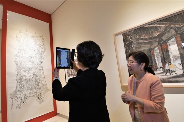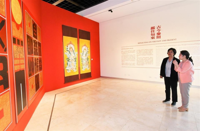 「請眾仙迎神,宮廟藝術展」,在縣立美術館展出,至2月18日(大年初九天公生)止,由8個公立美術館、博物館出借典藏品,展出58位藝術家、109件作品,縣長王惠美歡迎大家來欣賞宮廟藝術展,可在美術館內和館外,以科技祈福,在館內五樓有實境「放天燈」,在館前廣場也有科技實境放天燈,不但環保,也可拍照打卡。