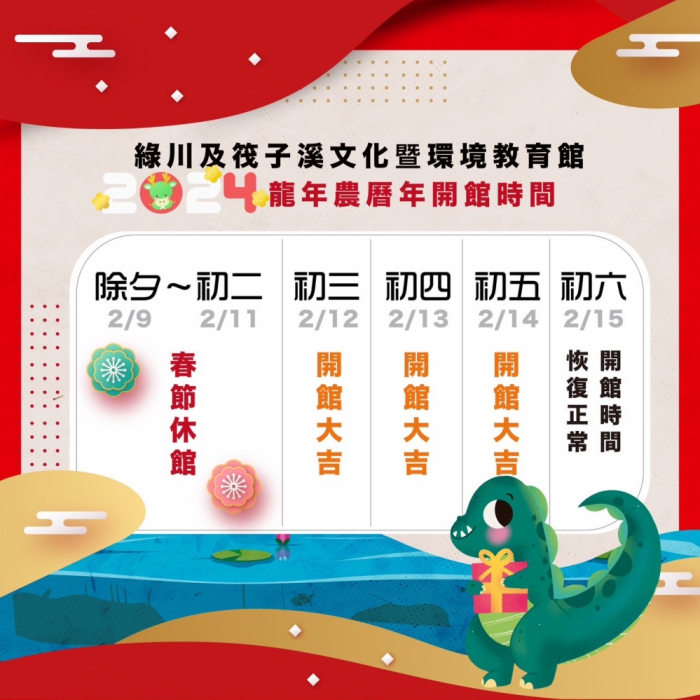 【記者林獻元台中報導】春節連假即將來臨,大年初三(2月12日)起,台中市政府水利局轄管的「綠川水文化暨環境教育館」及「筏子溪水文化暨環境教育館」提前開館,現場備有神秘小禮物,歡迎市民朋友在新春連假來場水文化巡禮,一起吸收新知、充實自我,讓龍年知識滿、財氣滿、健康滿滿滿!