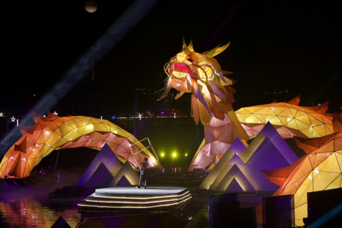 副市長賴淑惠表示,中台灣元宵燈會是全台最大的單一場域燈會,2023年首度移師到中央公園舉辦,佳評不斷,結合公園地景地貌讓燈組有更多元的呈現形式。此次市府用心籌辦,長達76米的水上巨龍主燈「台中龍賀」盤踞在中央公園水域中,隨巨龍甦醒,上百支的光束燈點亮中央公園夜空,搭配發光立方體的旋轉拋接、水上載具動態展演,打造磅礡震撼水上劇場展演。