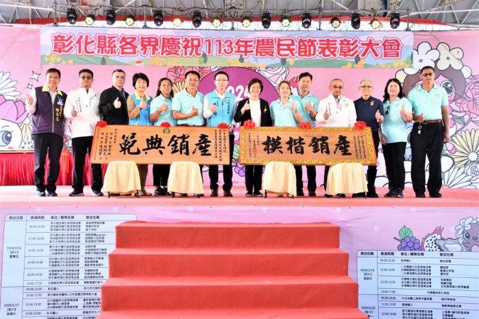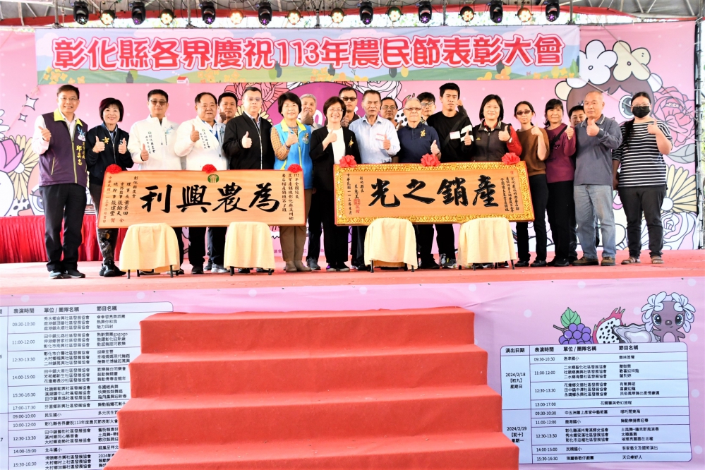 〔記者周為政溪州報導〕彰化縣113年度農民節表彰大會,今(17)日在溪州公園舉行,由王縣長表揚全國十大產銷班、全國十大綠色照顧和全國十大特色家政班等8單位,另有99名模範農民和農業人員。