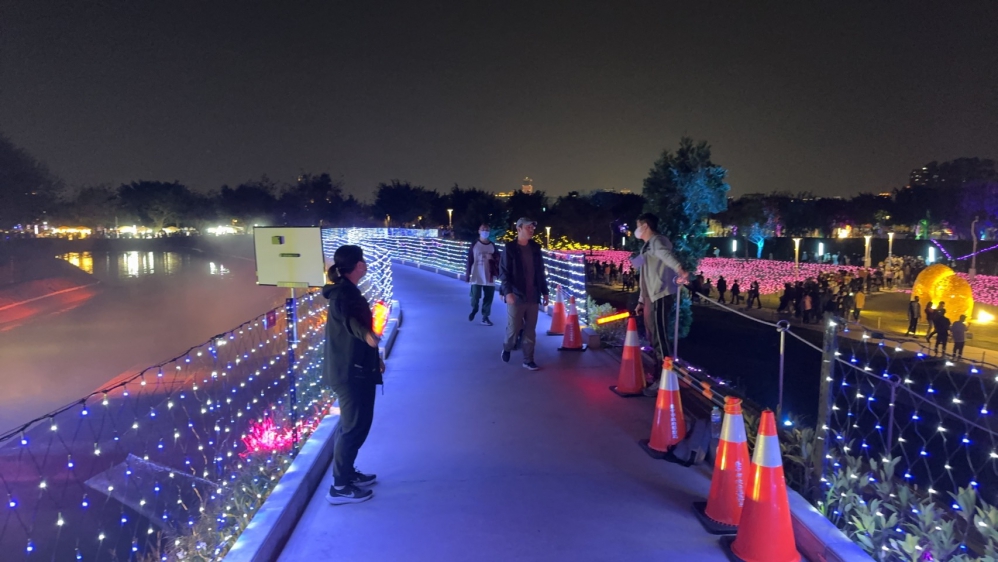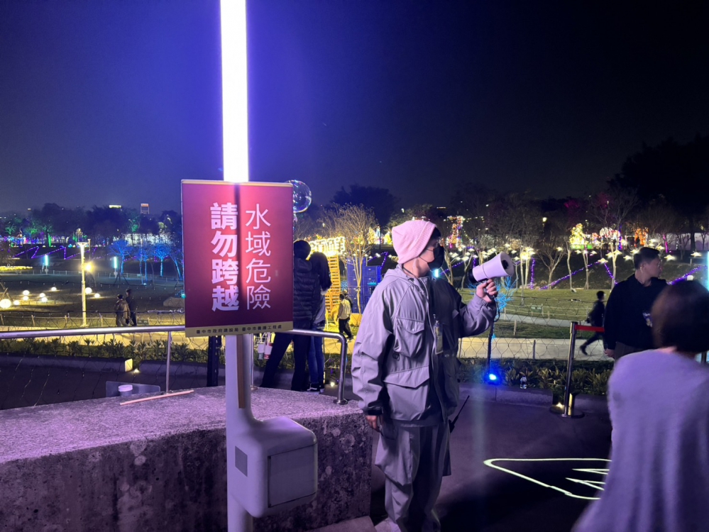 觀旅局呼籲,「雲河」總長200米,彷彿行走在雲海上,遠遠拍更夢幻,參觀民眾請勿倚靠或拉扯警戒圍設的網燈,市府也於燈會期間增派工作人員加強舉牌及廣播提醒,管制滯洪池南面通道,採取動線單向通行及提高容留管制,確保動線通暢,提供民眾安心、安全的賞燈場域。