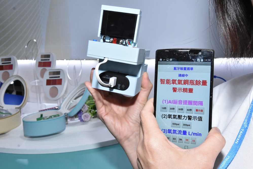護理部護理長陳靜儀說,住院病人在轉送過程中最擔心氧氣供應不足,護理部與創新育成研發中心進行跨部門合作,研發「氧氣鋼瓶智能監控裝置」,讓護理人員在轉送病人時可專注病人照護,氧氣在耗盡前發出語音警示,讓護理人員有足夠時間處理,以維病人安全。