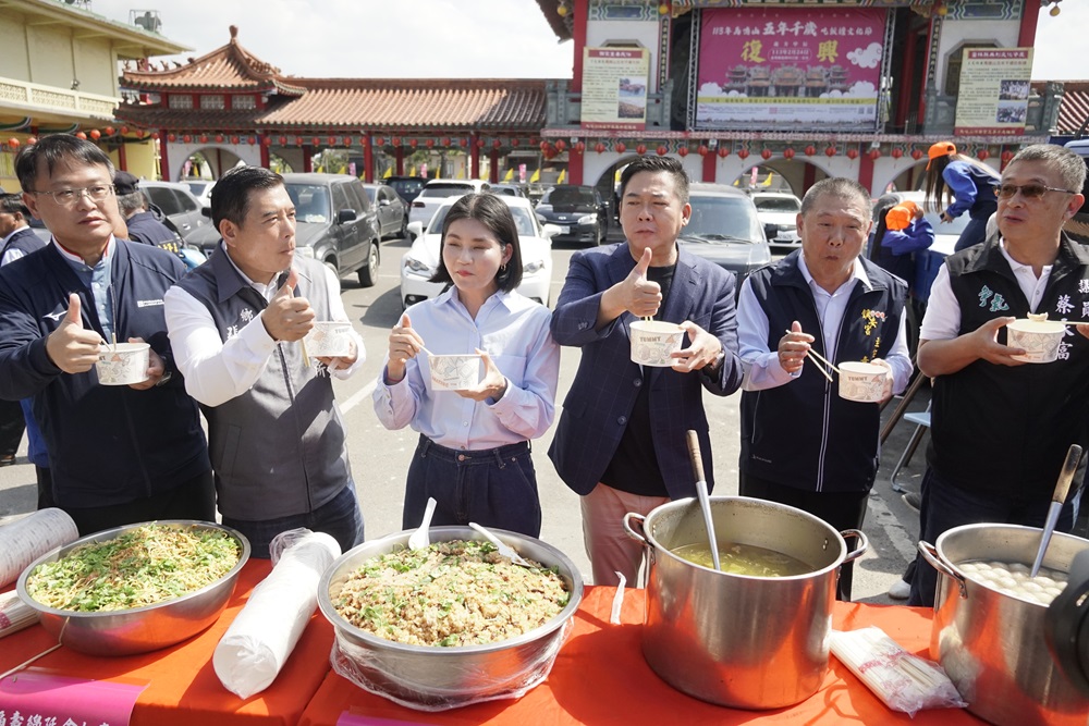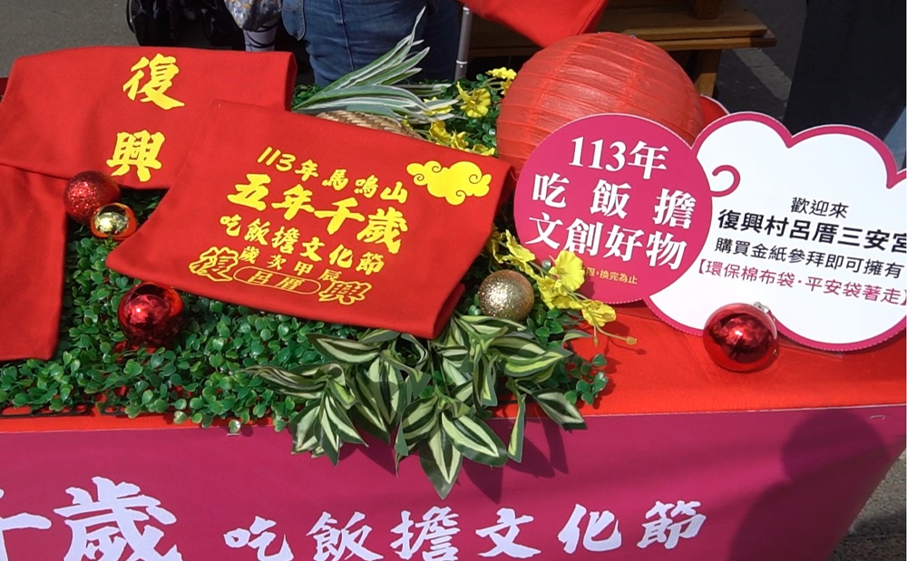 東勢鄉復興村村長張文發表示,復興村十五年才輪值一次,村民總動員,宰殺10隻肥羊還準備各種美食,飯擔現場準備羊肉湯、油飯、炒米粉、肉包、肉羹、鹹菜鴨…等多樣陣頭菜,要讓大家吃得歡喜!吃得開心。