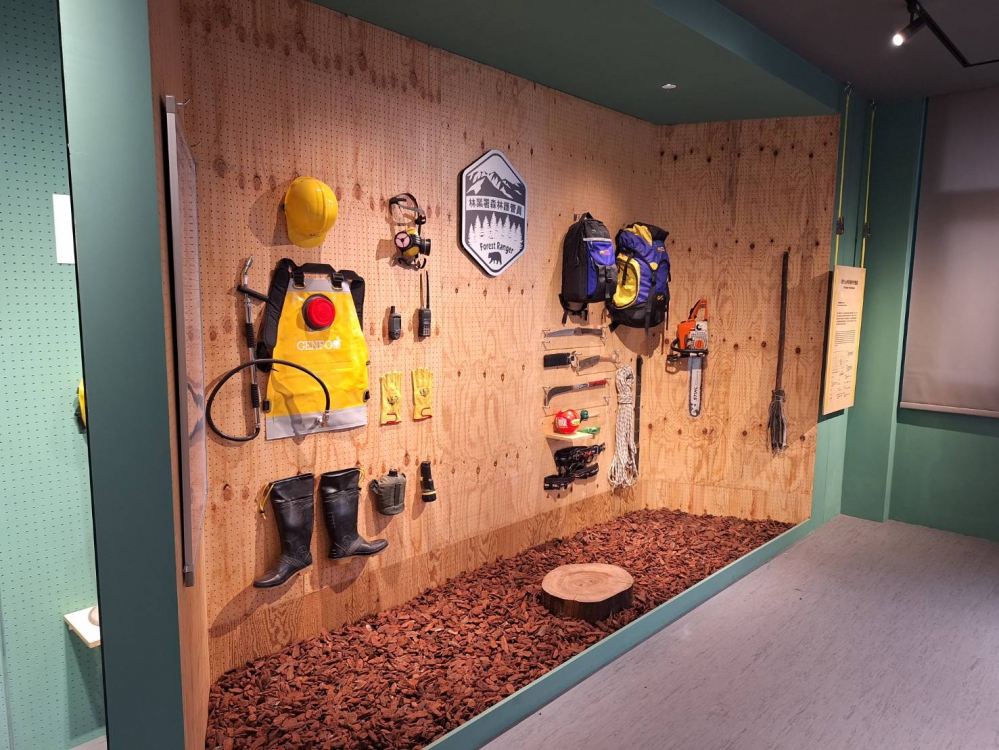 大雪山遊客中心重新裝修後部分區域自2月10日起搶先試營運,一進入遊客中心,可看到國產材疊砌而成的小木屋賣店佇立在正中間,展售大雪山特色各式文創商品如代表當地特色的蕨類抱枕、運材聯車、小雀幸拼圖,獨家設計國產材穿山甲書擋等;展示空間有大雪山林業歷史區,陳列大雪山林業公司的重要史料文件與展品,讓遊客真正重返林業現場。山林守護者展示區展示森林護管員的裝配,帶大家認識現今護管員保護森林資源的重要角色!