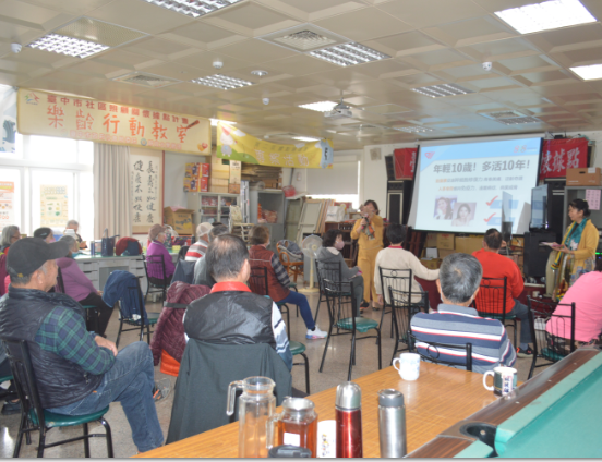 這項健康講座,請來了資深護理師梅銘欣及對健康很有研究的宗荷到場主講如何保健身體,兩名受邀主講者均表示,老化是各種慢性病的最大因素,現代科技的進步,可以讓原本老化衰退的機能重燃生機,老化可逆轉不是神話,呼籲大家讓自己再年輕一次,兩名主講者為了提高會員的聽講興趣,還於活動中進行有獎徵答,如此一來果然提高了老人的聽講精神,達到健康講座的目的。