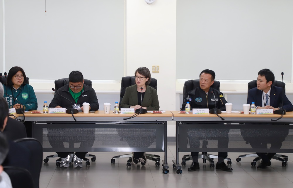 副總統當選人蕭美琴與縣長翁章梁、立委蔡易餘、王美惠、陳冠廷等政要以及廠商進行了面對面的交流。(記者蘇榮泉攝)翁章梁表示,今天的座談參訪將給業者帶來信心,並表示新的執政團隊將持續支持無人機產業的發展。業者今天也提出了許多建議,包括人才培養、法規測試等方面,期望政府能夠提供更多支援。蕭副總統當選人將傾聽業者的聲音,了解產業的需求,並相信未來還有更長遠的發展。